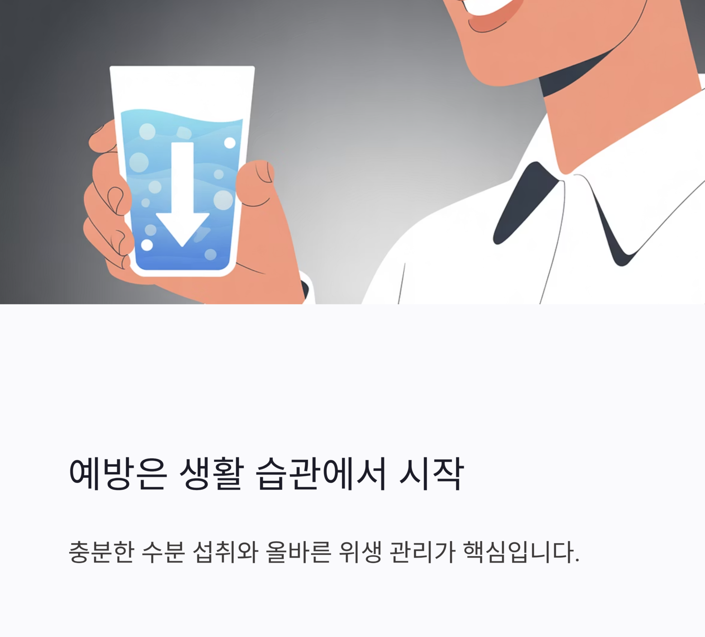 ✅ 물을 **자주** 마시기 (하루 8잔 이상)