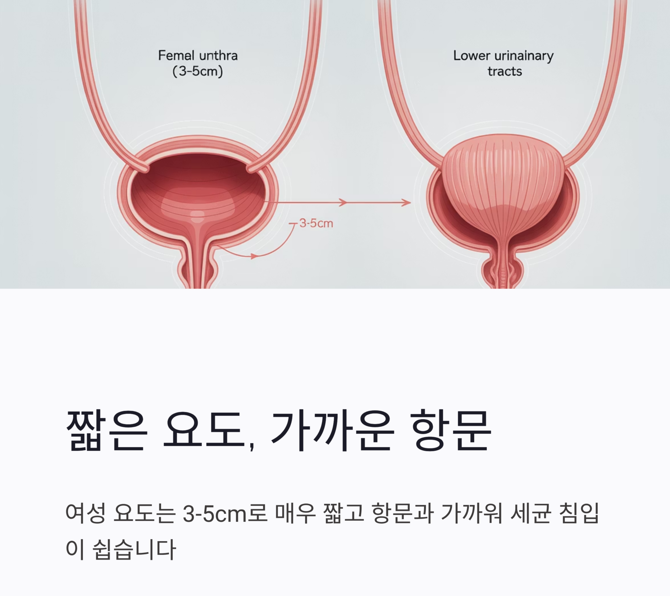**여성의 요도**는 **약 3~5cm**로 매우 짧습니다.