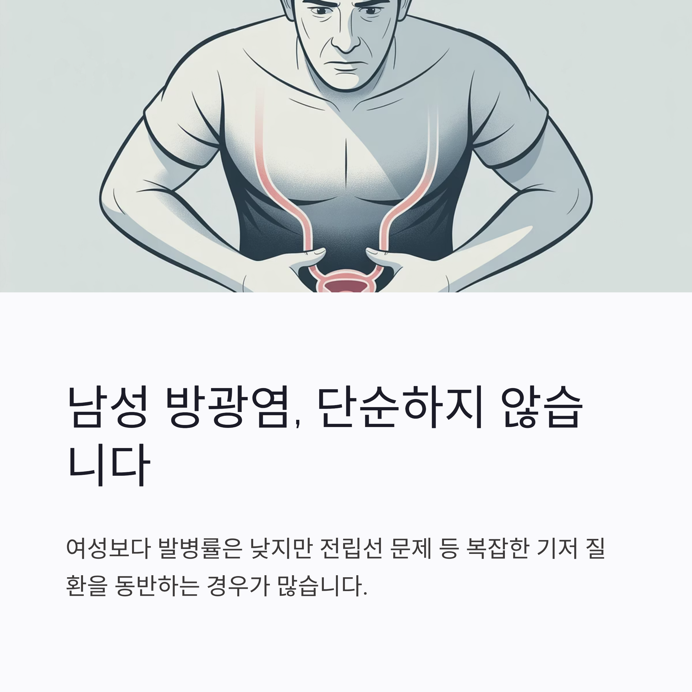 남성 방광염은 다른 기저 질환의 **경고 신호**일 때가 많습니다.